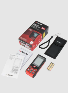Mesureur laser d’une portée de 50 mètres ( Laser de classe II), avec niveau numérique, précision de 0,2 mm/m et protection IP54 contre les projections de liquides et la poussière. Permet la mesure continue, le calcul de l’addition et de la soustraction, l’aire, le volume, la fonction de Pythagore. Écran éclairé et 99 mémoires. Comprend un étui, une courroie et 4 piles AAA de 1,5V. Corps robuste avec butées latérales en plastique résistant aux impacts. Pour les travaux de mesure professionnels et l’établissement de budgets.